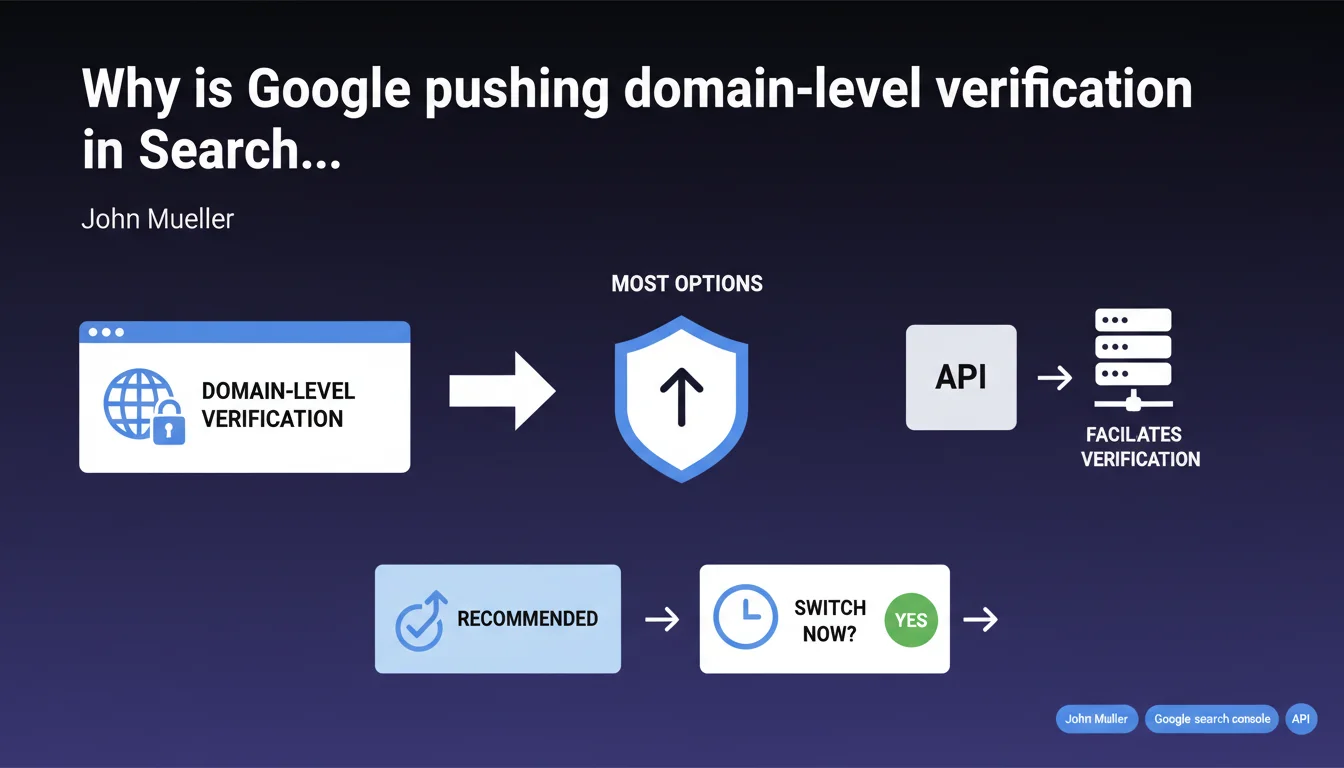 No. Google has offered domain verification since 2019. What's changing is the official emphasis: Mueller no longer says "you can," he says "we recommend."