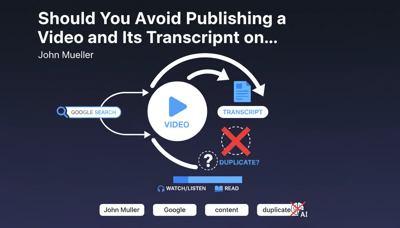 Think about Schema.org markup with VideoObject types and the transcript field to explicitly signal the relationship between video and text to Google. This strengthens the semantic understanding of your content.