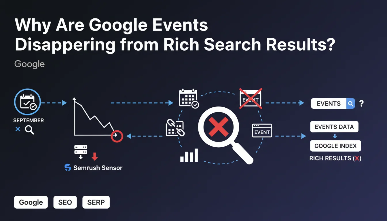 Since late September, rich results for events have virtually disappeared from Google's search results pages. This phenomenon was detected by several SEO professionals and confirmed by Semrush Sensor data.