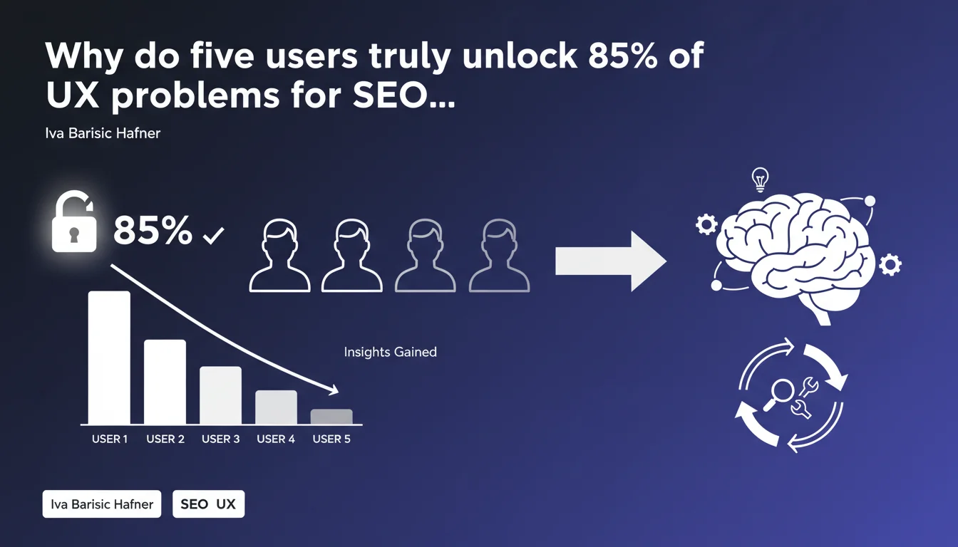 Google reminds us that in qualitative research, five participants are sufficient to identify the majority of user experience issues. Beyond that point, new insights drop off dramatically. For SEOs working on UX and Core Web Vitals, this means you can get actionable feedback without recruiting dozens of testers.
