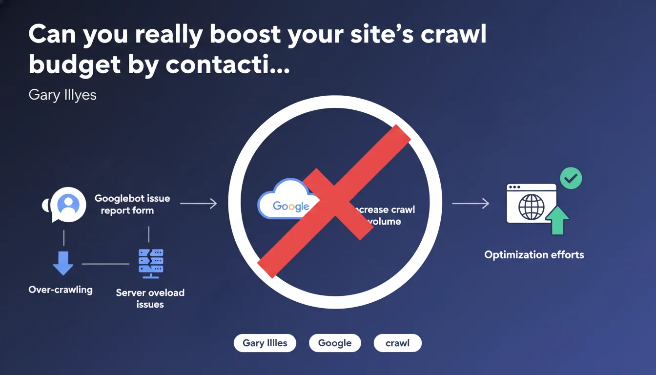 Concretely, this channel serves to throttle Googlebot when it becomes too resource-hungry, not to ask it to speed up. The distinction matters: Google offers no direct way for webmasters to negotiate a higher crawl budget through a form.