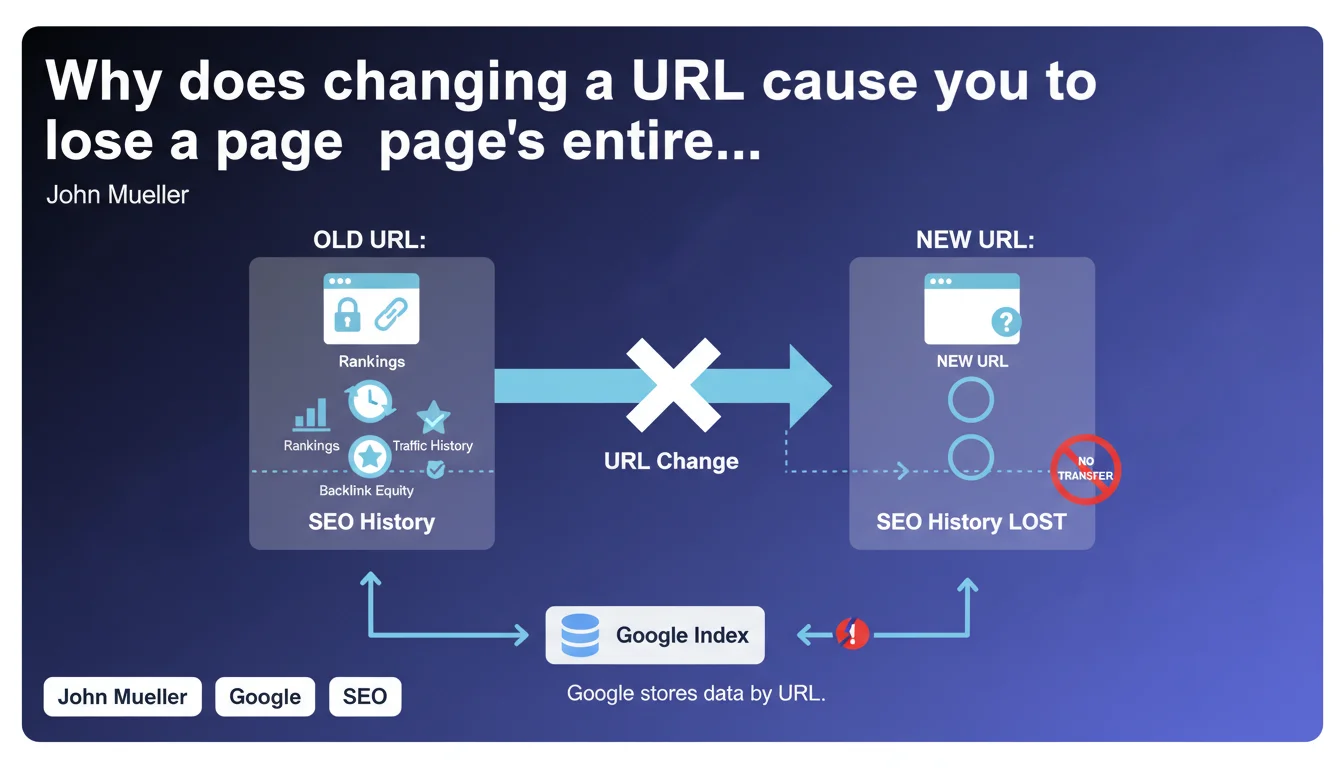 Concretely? If you change your URL from /product-123 to /new-product-123, Google treats this as two distinct pages. The old one keeps its history, backlinks, and authority. The new one starts with a reset counter.