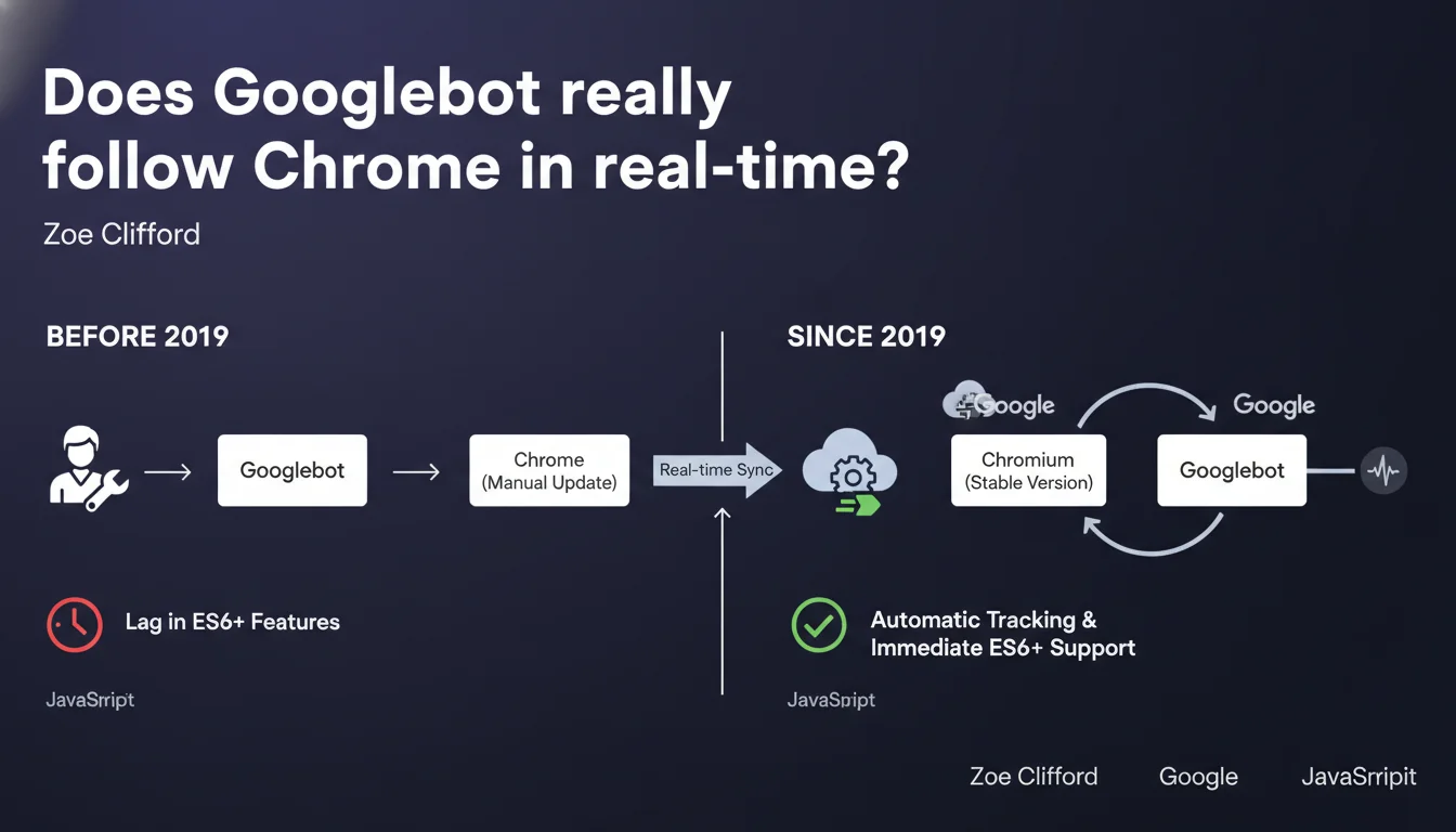 Googlebot has automatically tracked the stable version of Chromium since 2019 thanks to continuous integration. No more months-long delays in JavaScript support: each new Chrome version is now integrated without manual intervention. In practice, your ES6+ code and modern frameworks are rendered just like in an up-to-date browser.