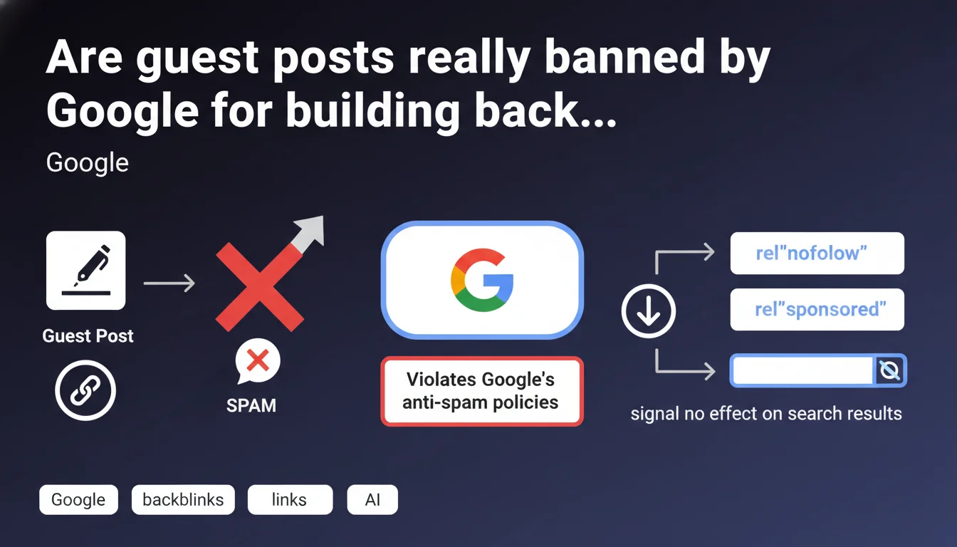 Google states that guest posts used solely to obtain backlinks violate its anti-spam policies. These links must be marked with rel="nofollow" or rel="sponsored" to avoid impacting search rankings. In practice, Google targets articles created exclusively to manipulate PageRank, not legitimate editorial contributions.
