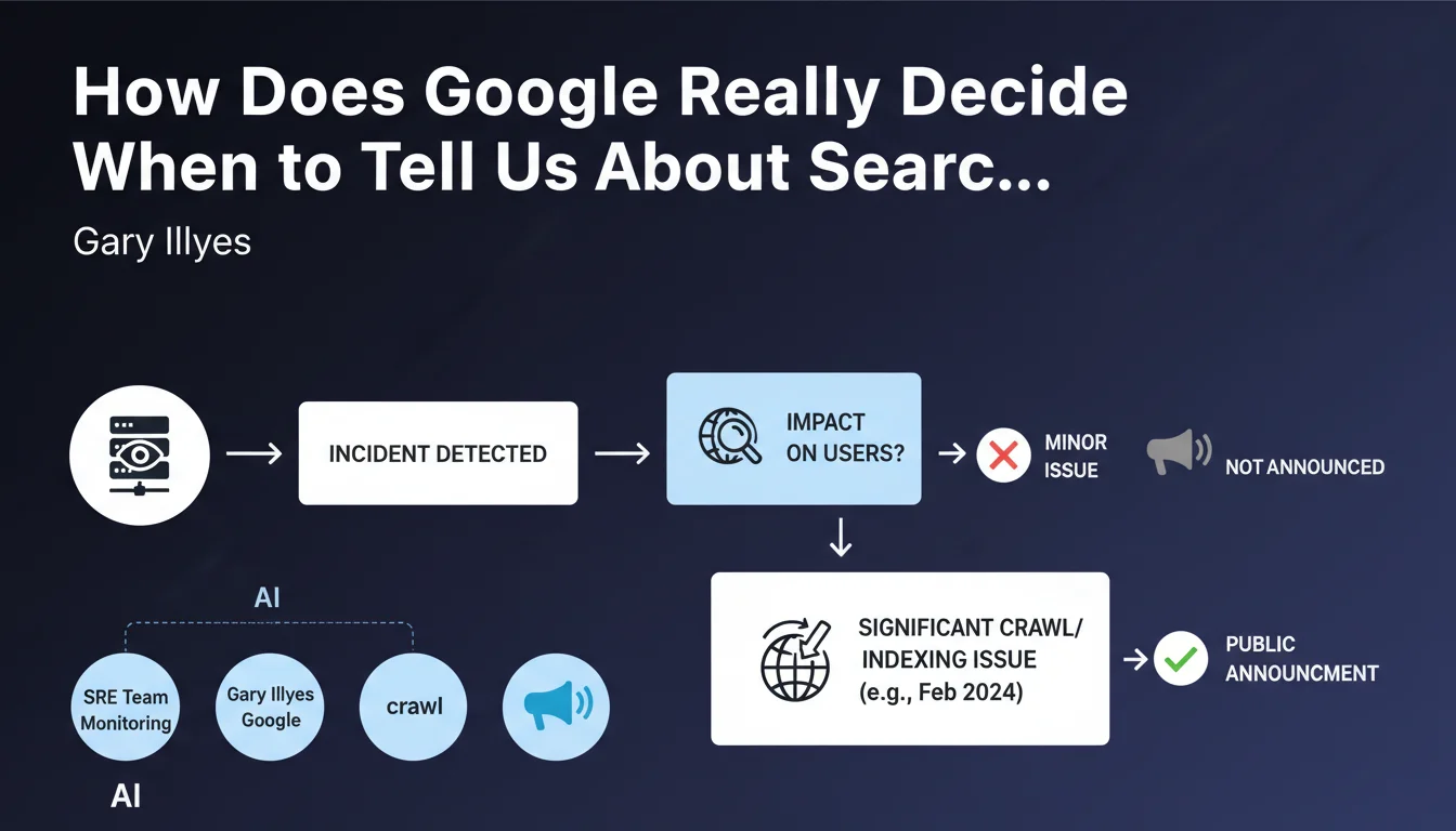 Google essentially communicates about incidents having a visible impact on users of the search engine. The cited example is the indexing problem from February 2024 that disrupted search results.