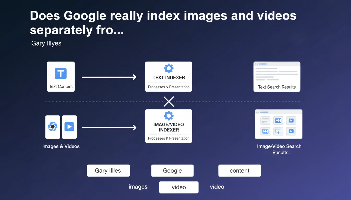 Google confirms that images and videos go through a completely distinct indexing system from textual content. Each type of media uses its own processes, evaluation criteria, and presentation modes in search results. In practice, optimizing for Google Images offers no guarantee of benefits for text ranking — and vice versa.