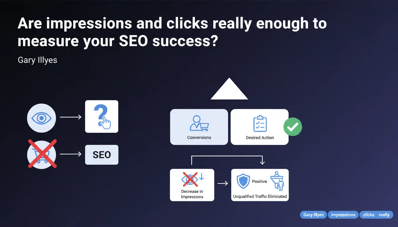 Gary Illyes reminds us that impressions and clicks are just surface-level metrics. What truly matters is conversion and achieving user objectives. A drop in impressions can actually be beneficial if it filters out unqualified traffic.