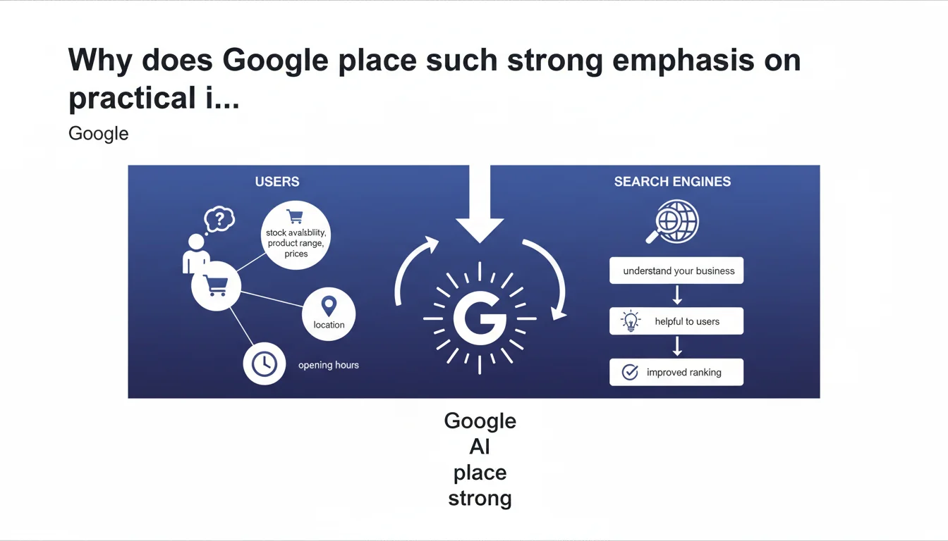 Google is trying to push businesses to make their business data accessible, both for the user seeking a quick answer and for its own information extraction systems (Knowledge Graph, Google Shopping, Google Business Profile).