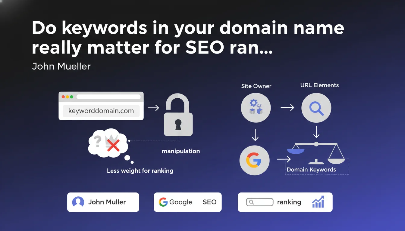 Google likely doesn't give much weight to keywords in the domain name for ranking purposes, since these elements can be easily manipulated by the site owner. John Mueller makes it clear: anything in the URL is controllable, so Google doesn't trust it as much as people think.
