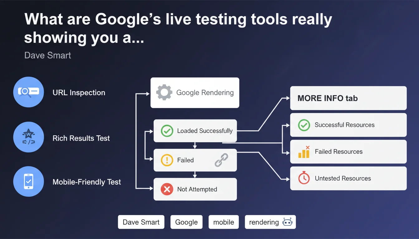 Google confirms that its live testing tools (URL Inspection, Rich Results Test, Mobile-Friendly Test) expose in the 'More Info' tab all resources loaded, failed, or not attempted during rendering. This visibility allows you to precisely identify what Googlebot actually sees — and more importantly what it misses — when crawling your pages.