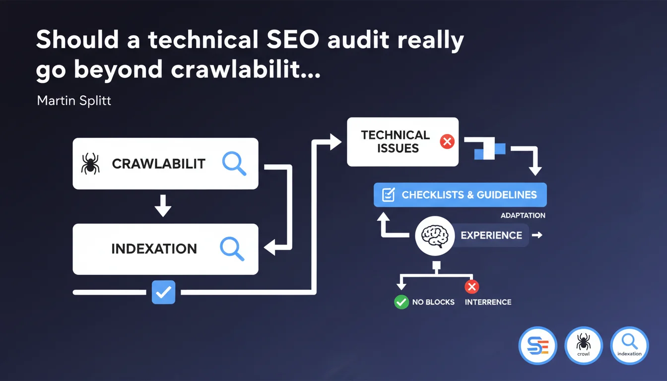 Google emphasizes that a technical audit primarily serves to verify that nothing blocks crawling or indexation. Checklists are useful, but they don't replace experience and judgment needed to adapt the analysis to each site's specific context.