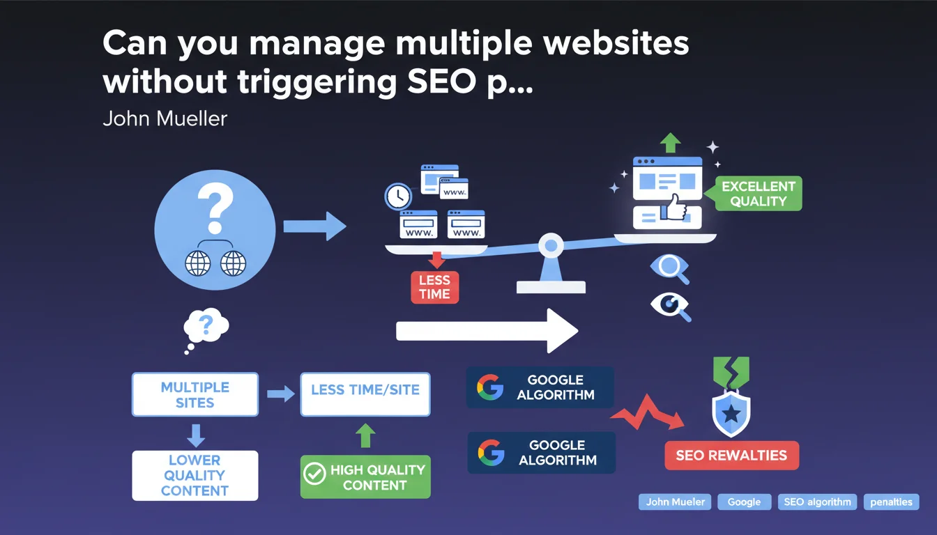 Google states that owning multiple websites is not penalizing in itself. The real issue? Spreading your time and resources across multiple projects mechanically dilutes quality — and it's this decline in quality that Google's algorithms detect and penalize.