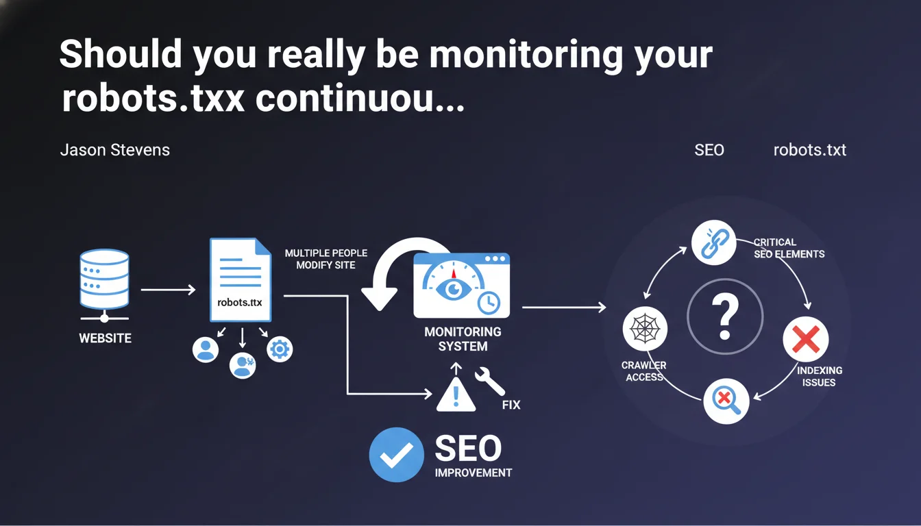 Google officially recommends implementing automated monitoring of the robots.txt file and other critical SEO elements. Why? Because multiple people can work on a site, and an accidental modification can block entire sections from being crawled without you noticing immediately.