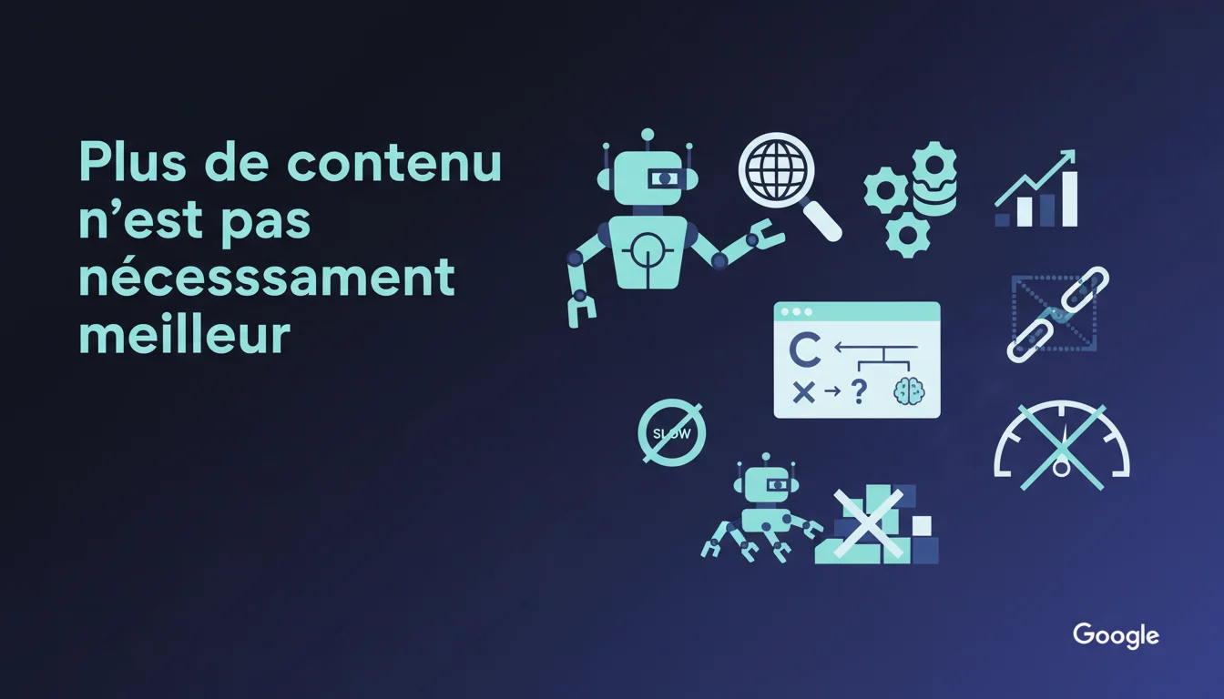 For years, many SEOs have applied the logic of "more pages = more traffic." Google directly breaks this myth. The quantity of content is not a ranking signal<\/strong> — it can even be a disadvantage if it dilutes quality.<\/p>