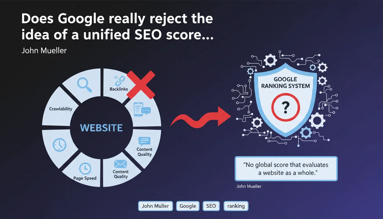 Google claims it does not use a global SEO score to evaluate websites. Unlike third-party tools that offer synthetic ratings, Google's algorithm analyzes hundreds of independent signals without merging them into a single metric. This statement challenges the relevance of audits based on a unique 'health score.'