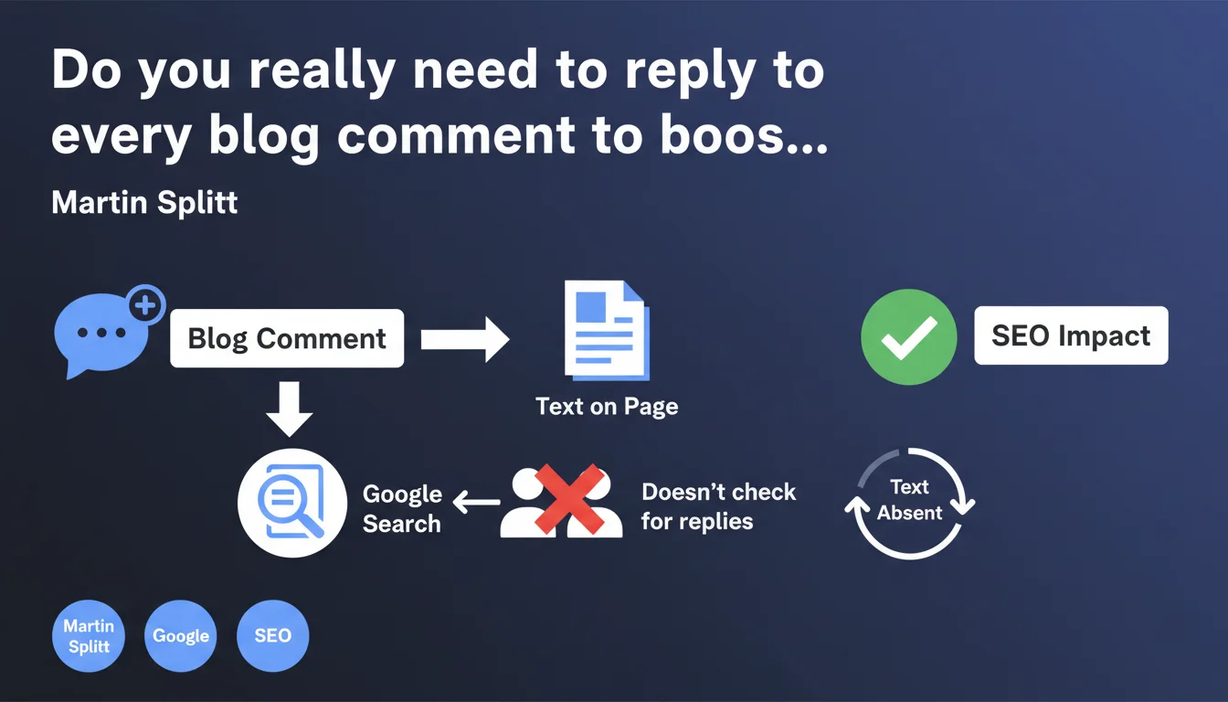The question keeps popping up in SEO forums: do you absolutely need to reply to comments to show Google that your content is "active" and "engaging"? Martin Splitt puts an end to the debate. Google treats comments as text — either present or absent. There's no logic that checks whether a comment actually received a response from the author.