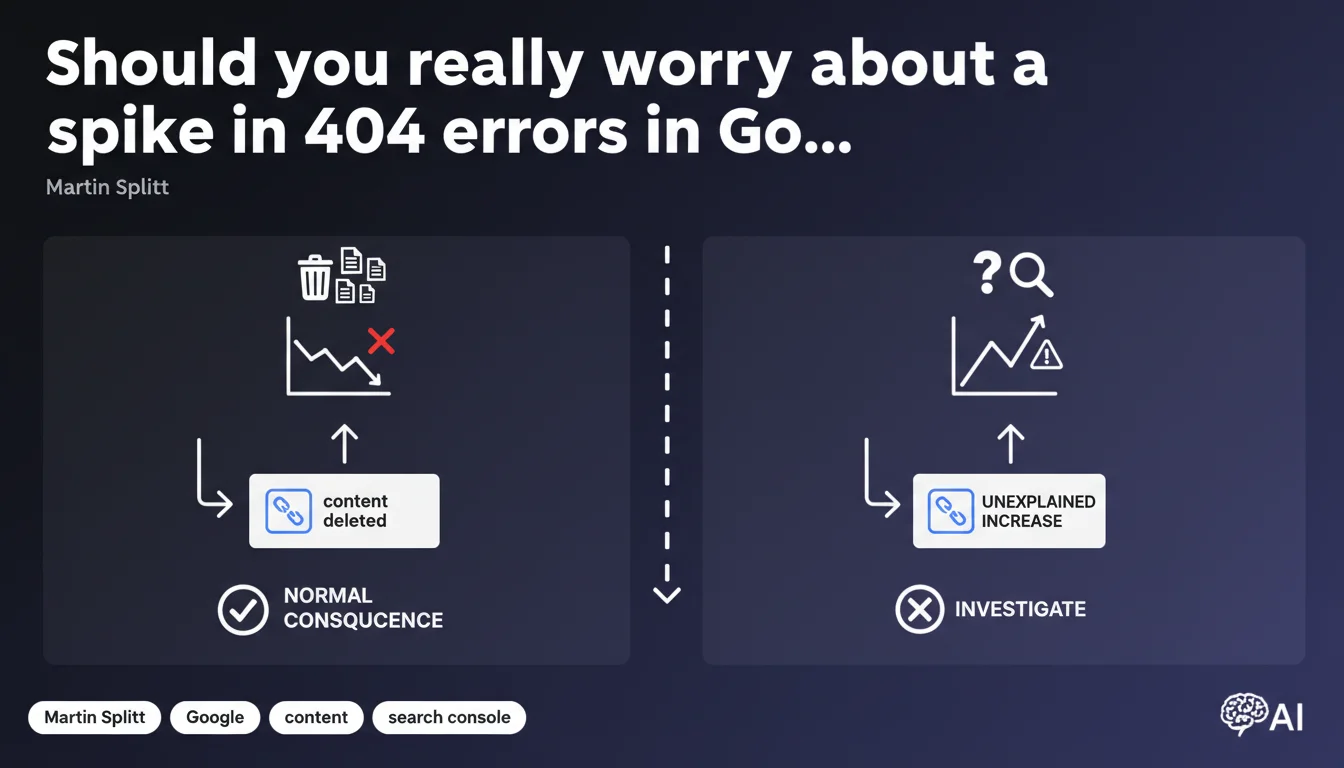 Google confirms that a high number of 404 errors is not problematic in itself — it's even normal after content deletion. The issue isn't the volume of errors, but their unexpected nature. An unexplained increase in 404s is the only warning signal that justifies a thorough investigation.