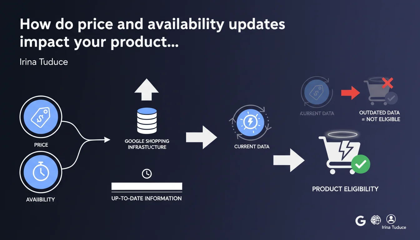 For shopping infrastructure, price and availability are very important signals because Google wants to display the most current data. This information must be kept up to date for your products to be eligible for display.