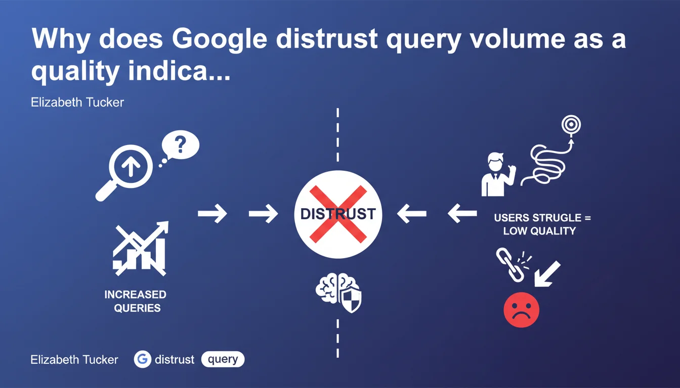 Google never measures query volume in the short term to evaluate the quality of its search results during experiments. The reason: an increase in the number of searches can signal that users are not finding what they're looking for on the first try and are reformulating their queries repeatedly. It's a signal of failure, not success.