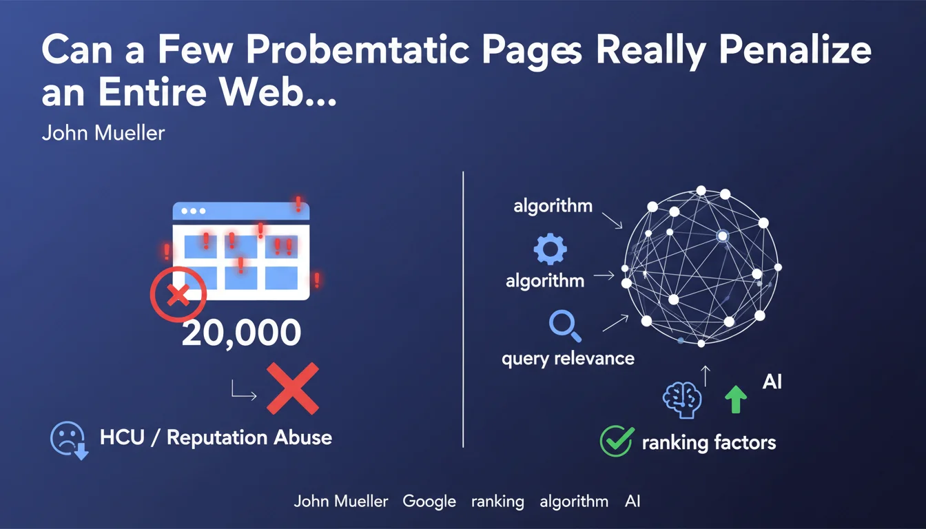 John Mueller clarified a crucial point on Reddit: a handful of problematic pages is generally not enough to penalize an entire site. Specifically, 10 pages affected by the Helpful Content Update (HCU) or reputation abuse on a 20,000-page site should not trigger a global ranking drop.