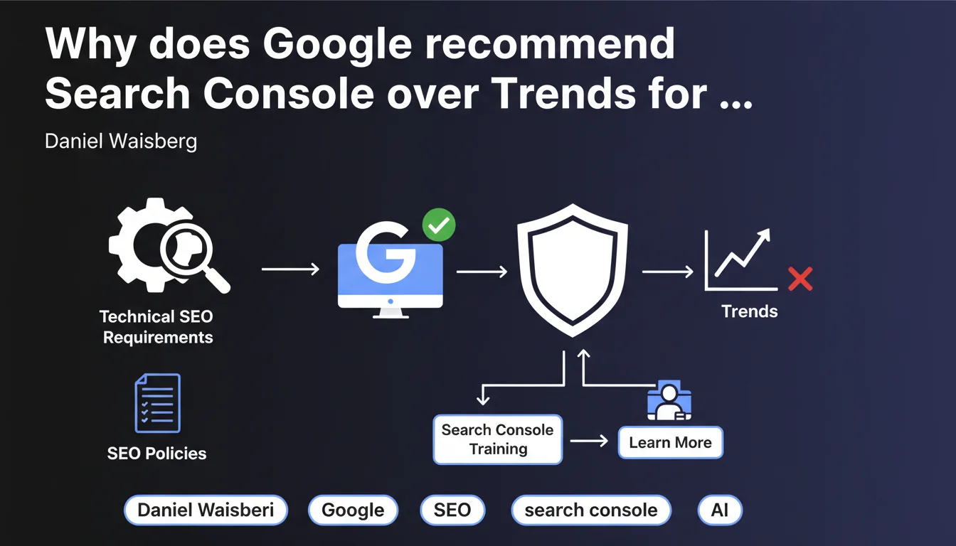 Google clarifies that Search Console, not Google Trends, is the appropriate tool for tracking technical requirements and SEO policies. Trends measures public search interest, not a site's technical performance. Waisberg reminds users of dedicated training resources to master this strategic tool.
