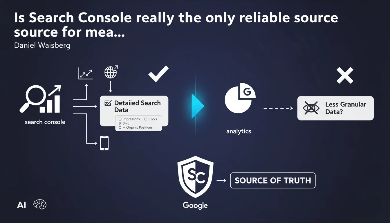 Let's be honest: no serious SEO professional relies on a single data source. Search Console has documented limitations — aggressive sampling beyond certain thresholds, aggregated data by default, 2-3 day reporting delay. Saying it should be "the source of truth" is reductive.