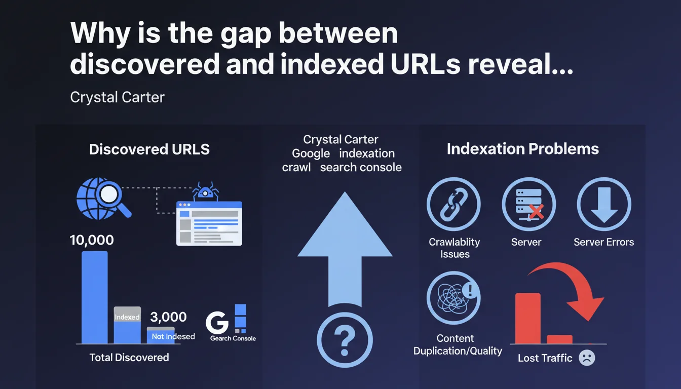 If you're seeing thousands of discovered URLs but only a fraction indexed, you have a structural problem. Not a one-off anomaly — a systemic symptom worthy of investigation.