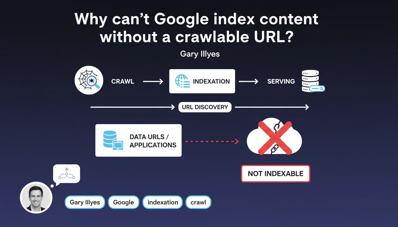Google's indexing model relies entirely on discovering resources through crawlable URLs. Content that doesn't exist in the form of accessible URLs — such as applications using data URLs or dynamically generated content without a stable URL — cannot be indexed. For SEO professionals, the rule is straightforward: no URL = no indexation.