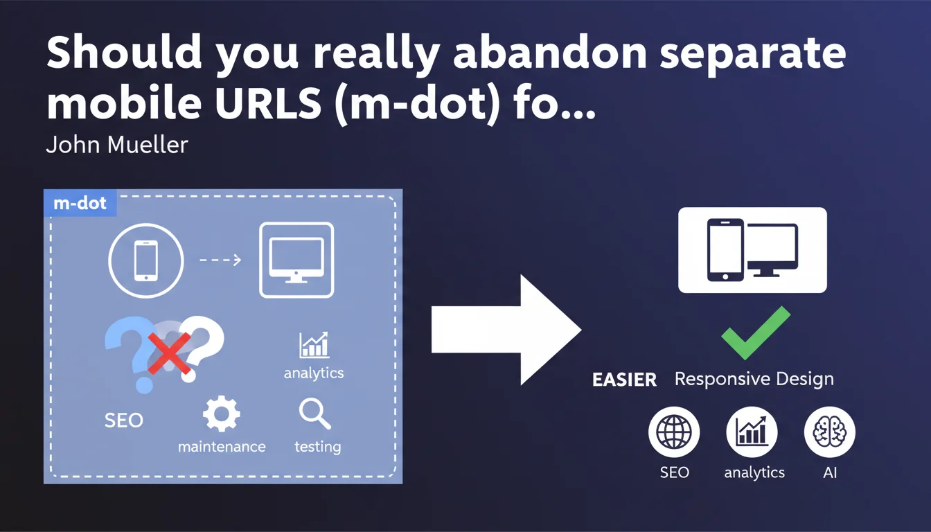 Mueller isn't saying that separate URLs (m-dot) are penalized — he's saying they complicate things. An important distinction.