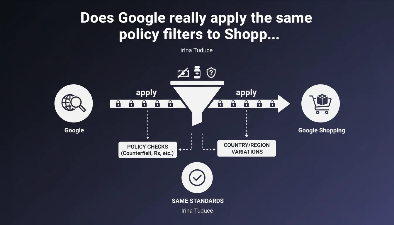 Google confirms that its Shopping infrastructure uses identical policy checks to web search — counterfeit goods, prescription medications, banned content. These rules vary by country and are publicly documented. For e-commerce businesses, this means a Shopping suspension can reflect a problem detected in organic search as well.