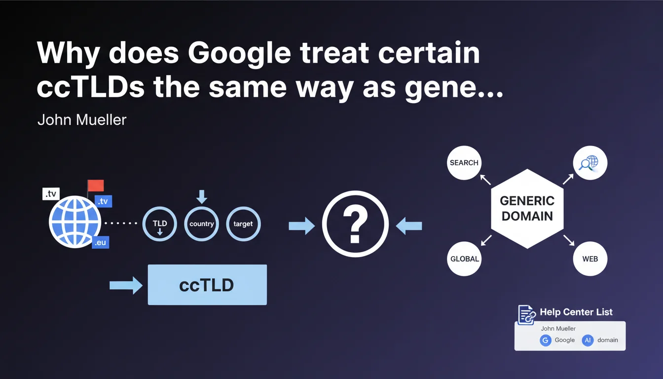 Google considers certain ccTLDs (.tv, .asia, .eu, etc.) as gTLDs, meaning they receive no automatic geographic targeting. Unlike a .fr or .de, these extensions don't assume any specific local market. The exact list of affected ccTLDs is published by Google in its Help Center.