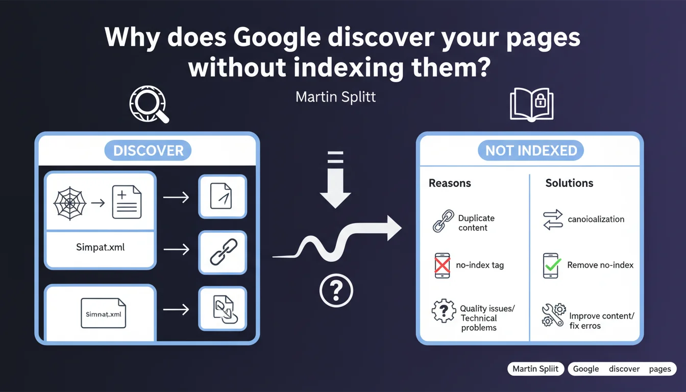 Google can crawl your pages without adding them to its index. Martin Splitt reminds us that discovery and indexation are two distinct processes — a page can be technically accessible without necessarily deserving a place in search results. Understanding this nuance helps you identify real indexation blockers.