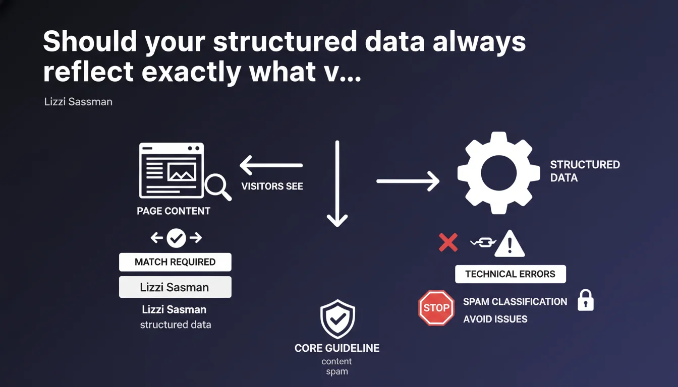 Let's be frank: this communication changes nothing. The requirement for structured data to match visible content has been in the guidelines for years. Lizzi Sassman is simply restating an existing rule without providing new precision.