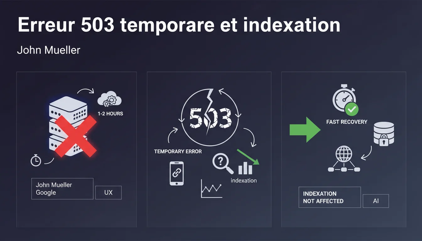A short-term 503 error (1-2 hours) has no impact on SEO. Google interprets this code as a temporary unavailability and automatically retries a few hours later without degrading your indexing. The danger only arises from prolonged 503 errors lasting several days.