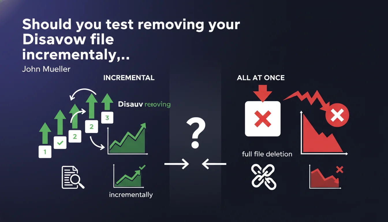 Google recommends not removing a Disavow file all at once, but rather proceeding in stages by gradually removing sections to measure the impact. This approach makes it possible to identify which disavowed links actually influence rankings and avoid a sudden drop in visibility. In practice: divide the file into several parts, remove one section, wait for the next algorithm update, analyze the results, then iterate.