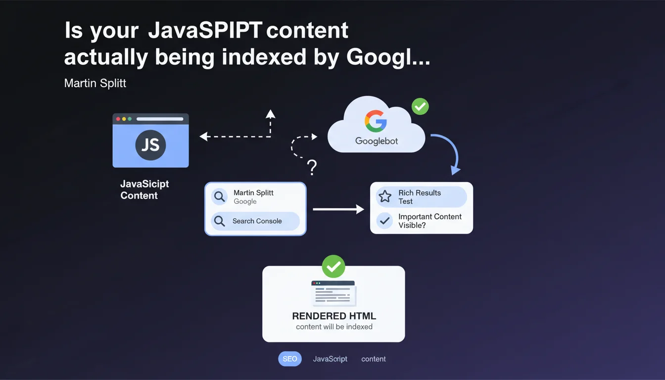 Google recommends using the URL inspection tool in Search Console or the rich results test to verify JavaScript rendering. If the content appears in the rendered HTML, it will be indexed. Simple in theory, but this statement glosses over several gray areas in how Googlebot actually works.