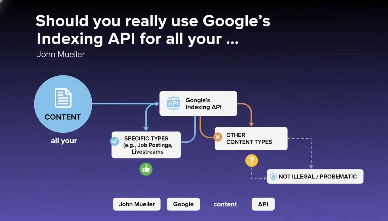 Google's Indexing API is relevant only for very specific types of content. Using it for other content types brings no tangible benefit, even though it doesn't cause technical problems. Mueller confirms it's a niche tool, not a universal indexing lever.