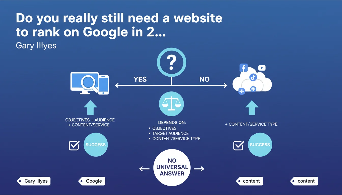 For certain businesses—local restaurants, skilled trades, proximity services—an optimized Google Business profile generates more conversions than a poorly designed brochure website. Gary Illyes acknowledges this ground reality rather than maintaining the dogma that everyone needs a website.