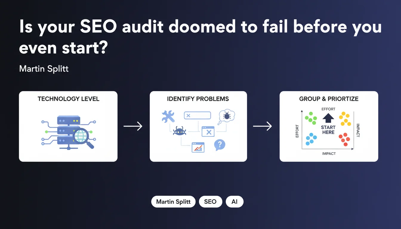 Google is clear: a meaningful SEO audit begins by understanding your site's technical architecture (CMS, framework, rendering method...) before launching crawlers. Only then should you group detected issues by actual effort and real impact on that specific tech stack. Without this preliminary phase, you're wasting time fixing false positives or overlooking genuine blockers.