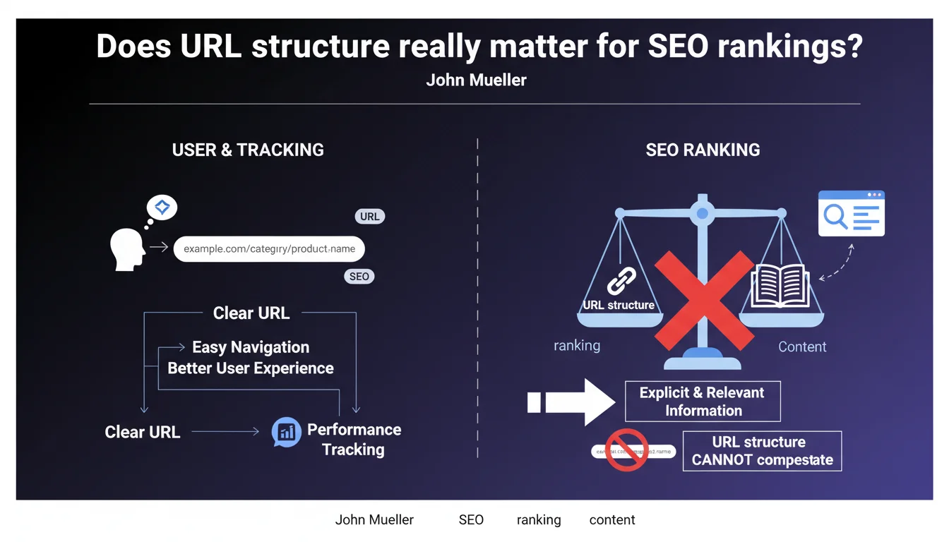 However, an important nuance must be added: URL structure plays a role in the site's overall architecture. A consistent URL structure often reflects a logical content organization, which helps Google understand the hierarchy and relationships between pages. It's not the URL itself that matters, but the structure it reveals.