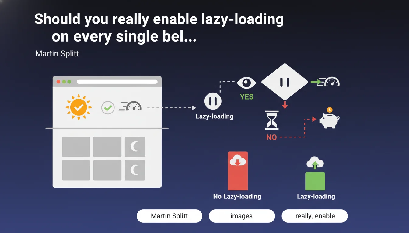 Worse: on certain templates, the LCP image itself might end up slightly below-the-fold on certain resolutions. If you lazy-load it, you artificially delay your LCP — exactly the opposite of what you're trying to achieve. [Must be verified] on every template, every device.
