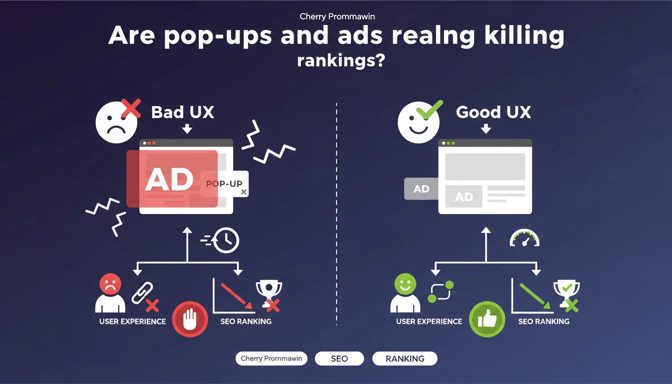 Google measures these indicators and uses them as ranking factors. So even if your ads don't "visually" bother the user, their technical weight alone is enough to handicap you in the SERPs.