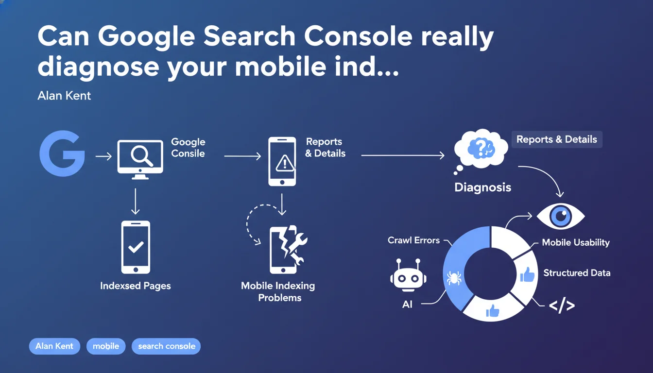- Search Console offers dedicated reports for mobile indexing issues (coverage, usability, mobile Core Web Vitals)