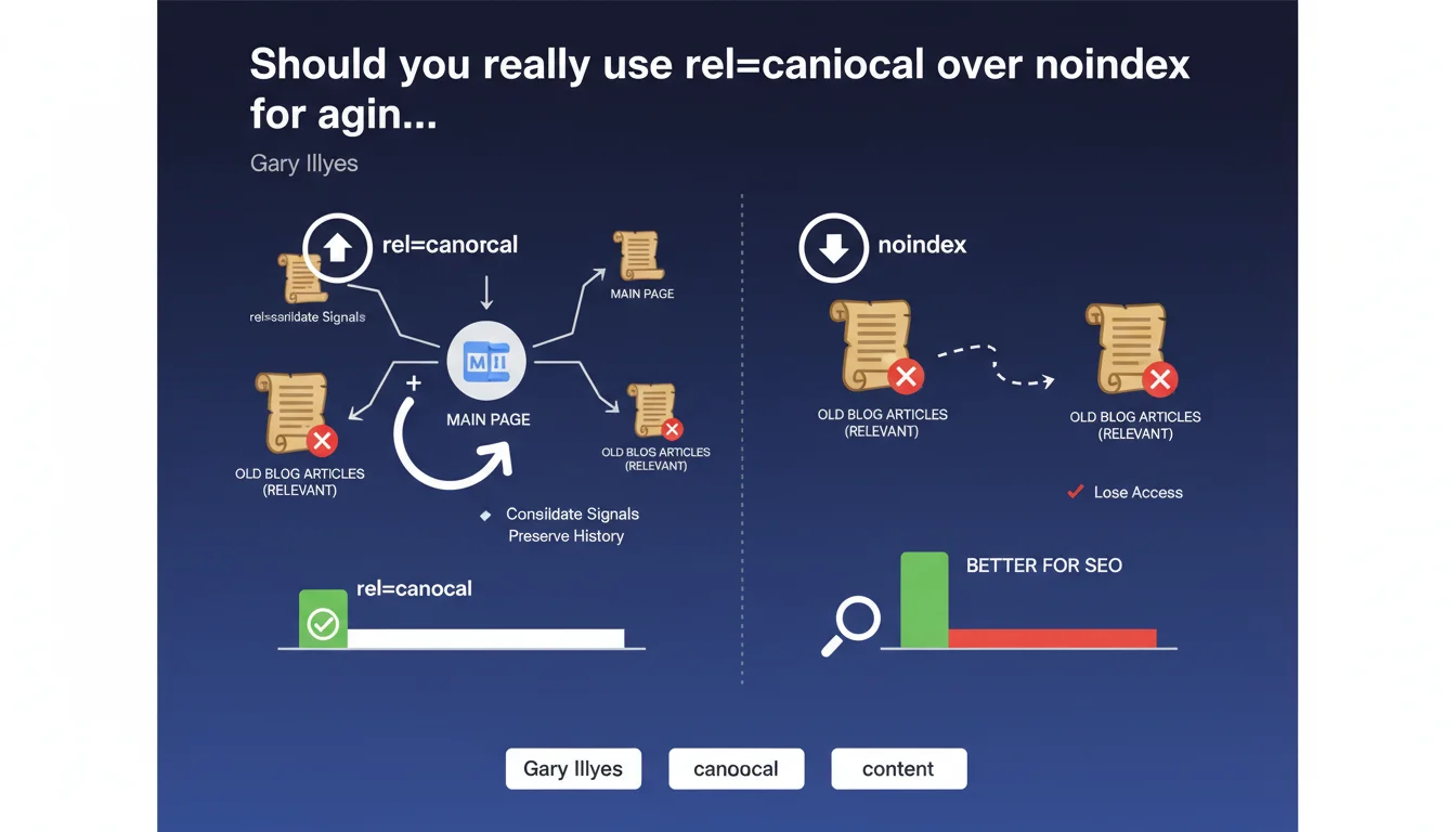 Google recommends using rel=canonical rather than noindex to manage old blog articles that remain relevant. The goal: consolidate SEO signals toward your main content while maintaining access to archives. An approach that challenges conventional wisdom about handling outdated content.