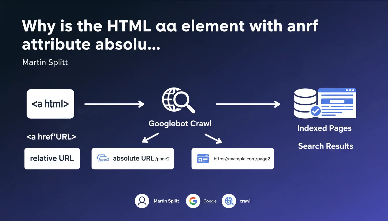 Google requires the use of the HTML <a> element with a valid href attribute for a link to be recognized and followed by its robots. Relative or absolute URL, it doesn't matter — but without <a> and href, your link simply doesn't exist for Googlebot. A technical basics often overlooked in modern JavaScript-heavy sites.