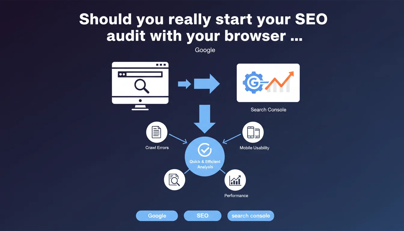 The recommendation aims to avoid analysis paralysis. Too many SEOs lose hours in third-party tools before even understanding what Google actually sees. The browser reveals raw user experience — load times, mobile display, content accessibility. Search Console, on the other hand, exposes data directly from crawling and indexation.