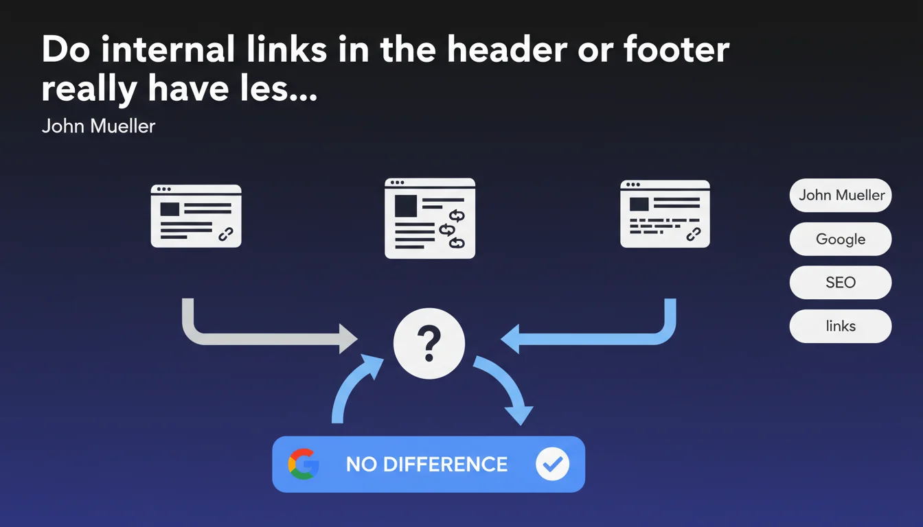 Google claims to make no distinction in value between internal links based on their position on the page. Whether they are in the header, footer, or main content, all internal links would be treated equivalently. This statement challenges certain SEO practices that have been established for years.