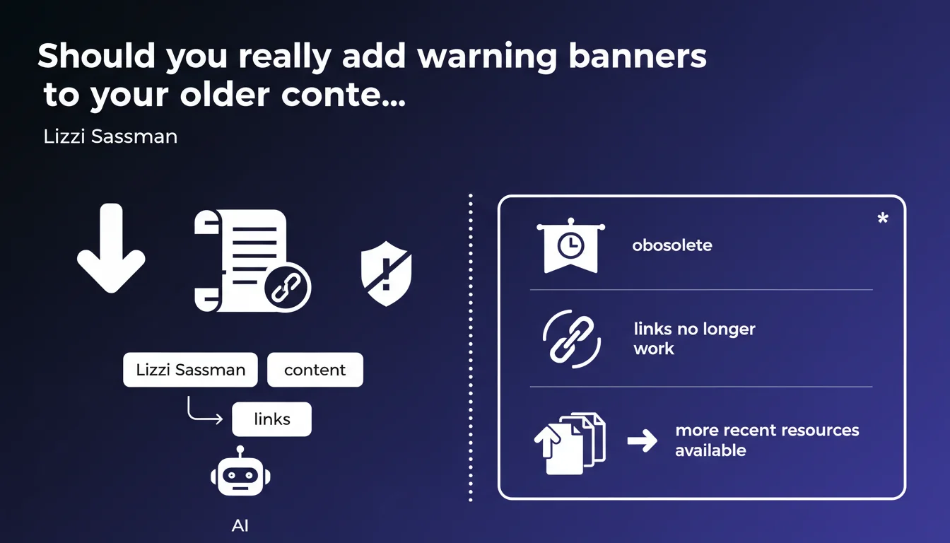 On a technical or scientific blog, systematically adding "this content may be outdated" can harm credibility — especially if the information remains valid. The risk: creating artificial distrust when the content is still relevant.