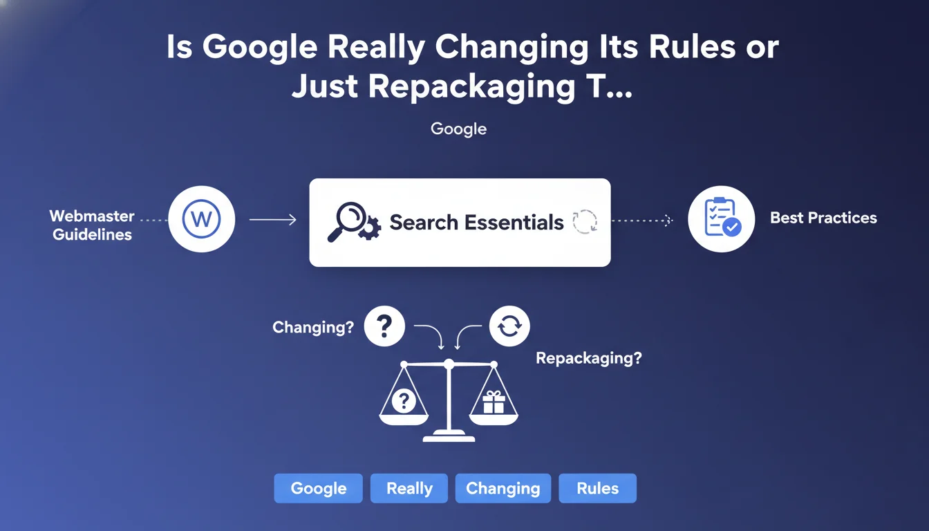 Google is rebranding its Webmaster Guidelines as 'Search Essentials' with a complete overhaul of the documentation. This isn't just cosmetic: the structure and tone are evolving to address a broader audience than just historical webmasters. The question remains whether the recommendations themselves will shift fundamentally or if this is primarily a marketing repositioning.