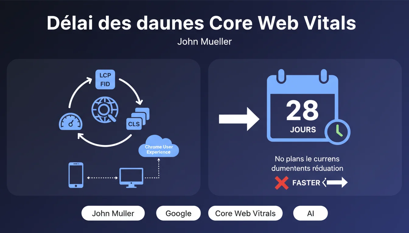 John Mueller a expliqué lors d'un hangout avec des webmasters que le fait d'avoir un bon « score » Core Web VItals (web performance, temps d...